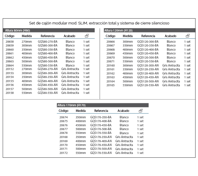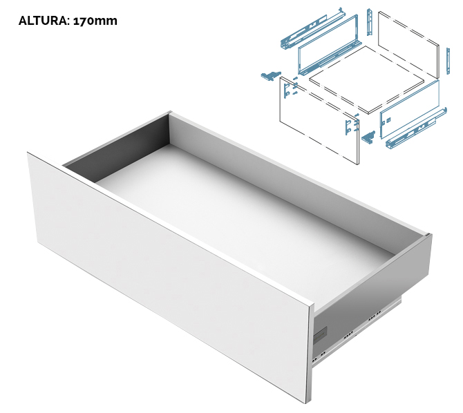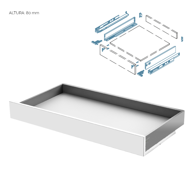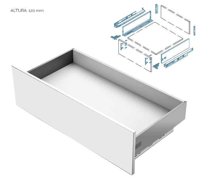 Cajón modular modelo Slim, laterales con guía cuadro.
