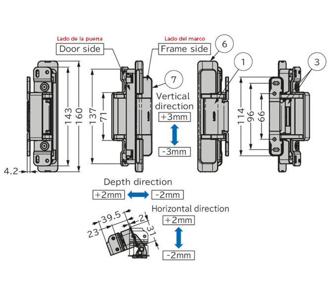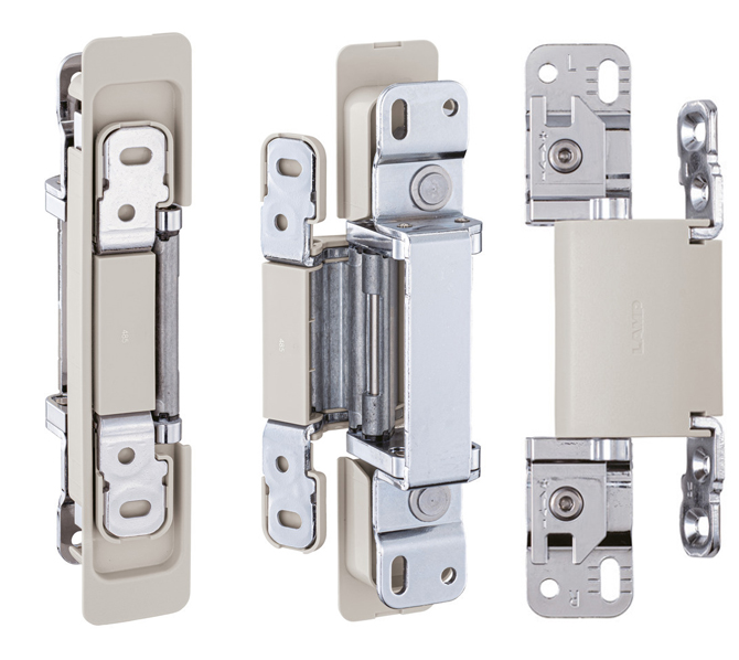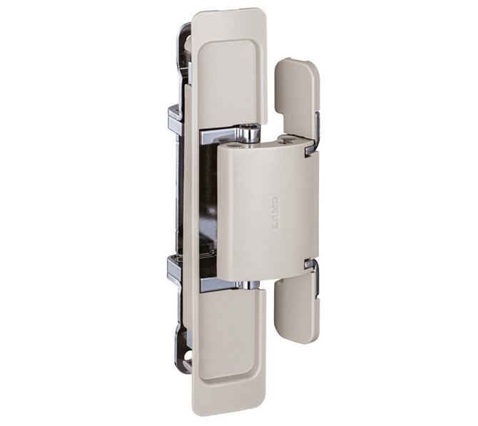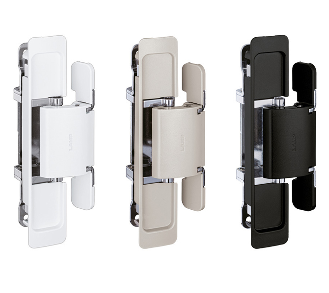 Bisagra oculta de montaje en superficie. Apertura de 110°. Presenta una importante innovación en la gama de bisagras ocultas para puertas de paso de la firma Sugatsune. Se trata de la bisagra HES2S-150, con mecanizado solo en la parte de la puerta y montaje superficial, sin mecanizado, en la jamba, pero ahora para puertas de 35mm, en lugar de 38mm, como su modelo anterior HES2S-140. Disponible en tres acabados: blanco, gris claro y negro, esta bisagra tiene una apertura de 110º y un práctico ajuste 3D post-montaje. Además, 2 udes. pueden soportar un peso de hasta 40Kg en puertas con unas medidas máximas de 90x270cm, y 3 udes., 50 kg. Con una construcción de alta calidad en acero inoxidable, la HES2S-150 ha superado el test de los 300.000 ciclos.
