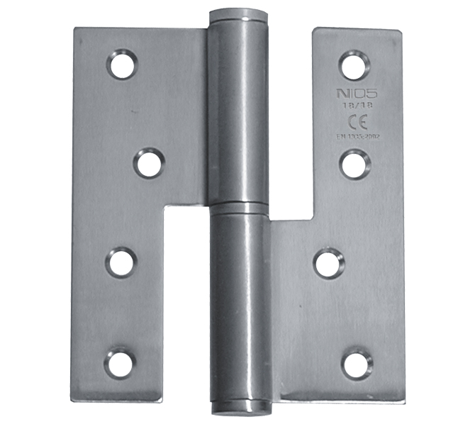 Pernio de pala ancha, derecho e izquierda, con canto cuadrado. Fabricado en acero inoxidable satinado. De 100 y 120 mm.