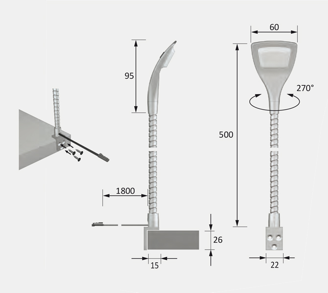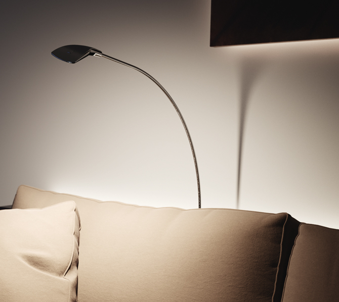 Lámpara de lectura, con cuello de cisne flexible y luz de diseño, modelo SwanLite, para cabecero y sofá. Cuenta con interruptor en el cabezal de alumbrado. Fácil de reequipar, presenta ángulo de haz ancho y cabezal de alumbrado giratorio.