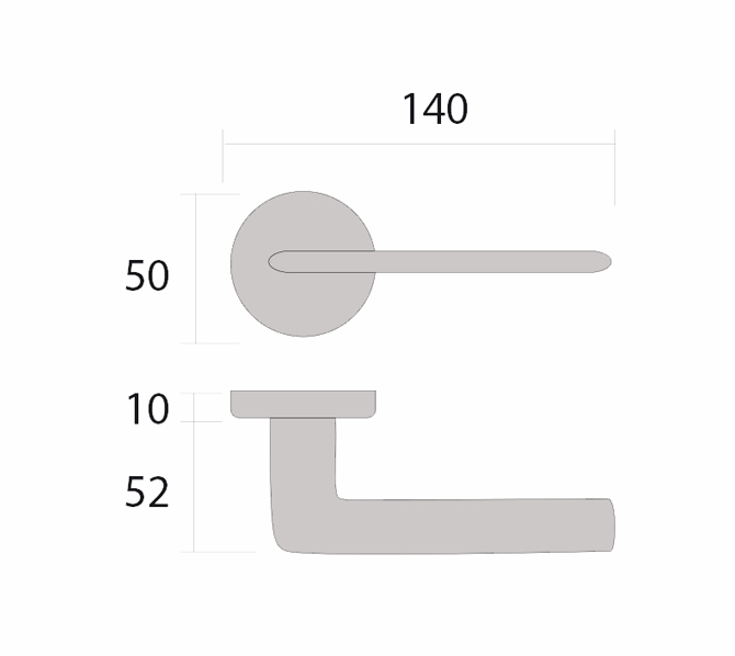 Manilla de latón, con roseta redonda, estándar. Medidas: 140x62x50 mm.