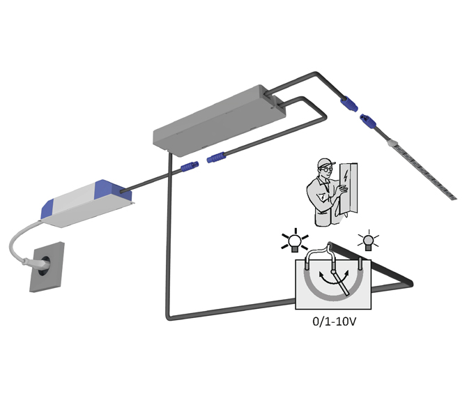 Módulo atenuable. Se puede unir con un control de edificios. Solo para usar con sistema de control Dali.