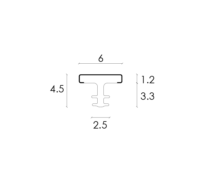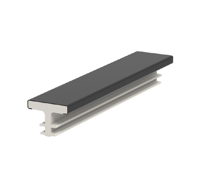 Perfil 1 metro decorativo kappa coextruido para puertas, muebles y paneles. La superficie es de aluminio lacado con pinturas especiales resistentes. El material básico es CAB o termoplástico (acetato butirato de celulosa).