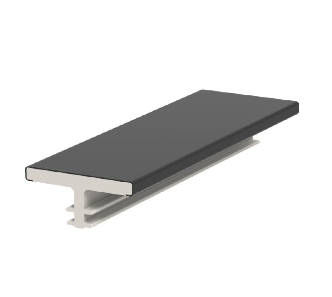 Perfil 1 metro decorativo kappa coextruido para puertas, muebles y paneles. La superficie es de aluminio lacado con pinturas especiales resistentes. El material básico es CAB o termoplástico (acetato butirato de celulosa).