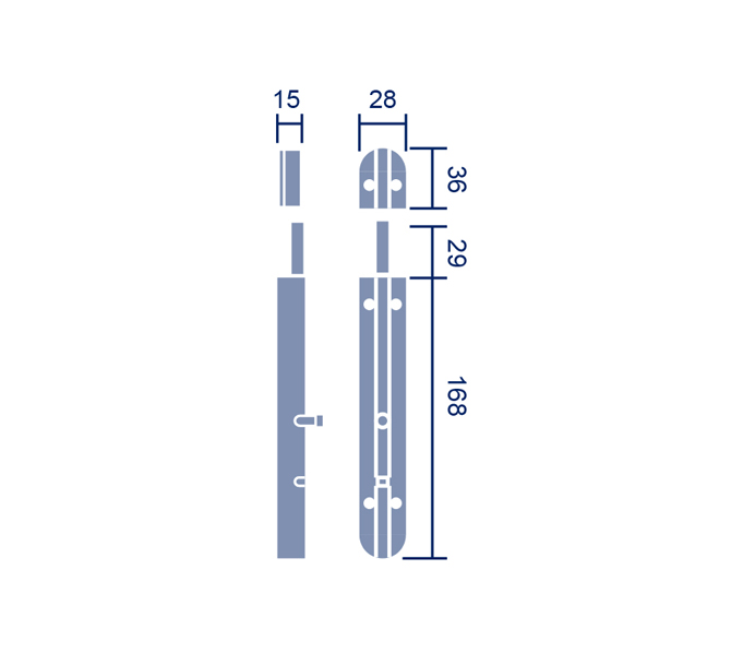 Pestillo sobreponer para puerta. Medidas: 204x15 mm. Fabricado en acero inoxidable satinado.