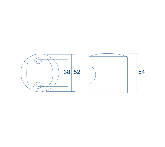 Pomo fijo de Ø52 mm para cabina sanitariar. Fabricado en acero inoxidable satinado.